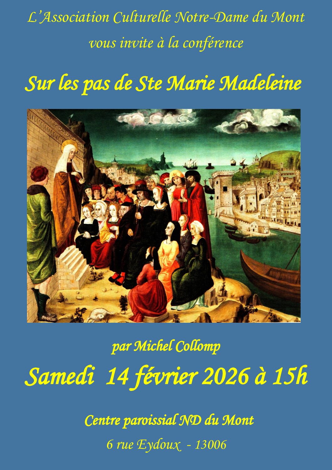 Organisé au Centre paroissial, par l’Association Culturelle de Notre Dame du Mont,6 rue Eydoux.