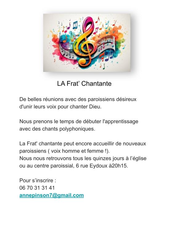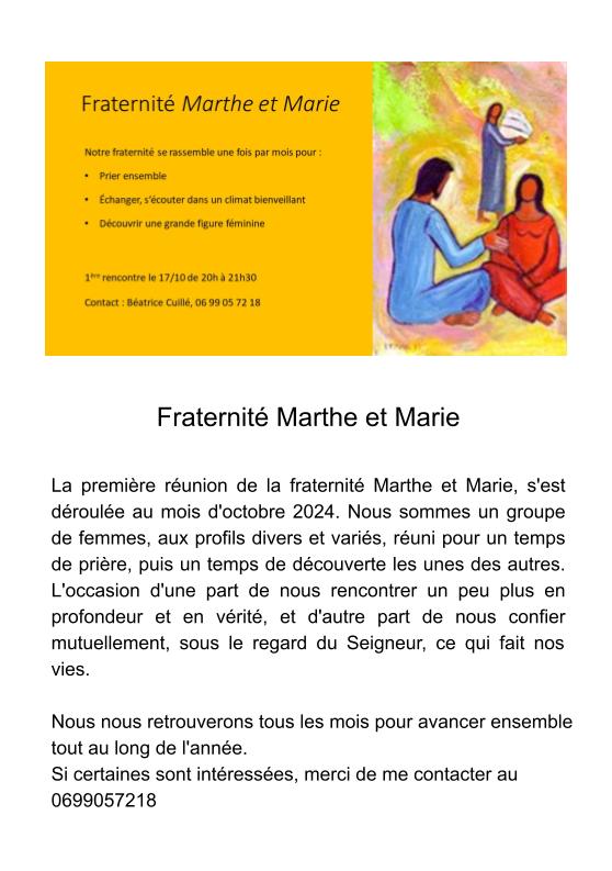 Si vous aussi, vous désirez animer un fraternité dans le cadre de la paroisse Notre-Dame du Mont, créez votre flyer et envoyez le par mail au Père Alexis Leproux
